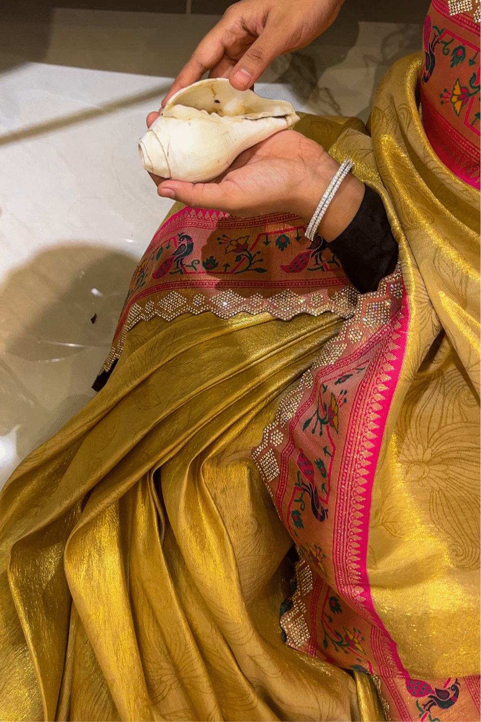 Ideal for weddings, receptions, festive rituals, or family celebrations—this golden silk saree embodies richness while carrying a graceful charm.