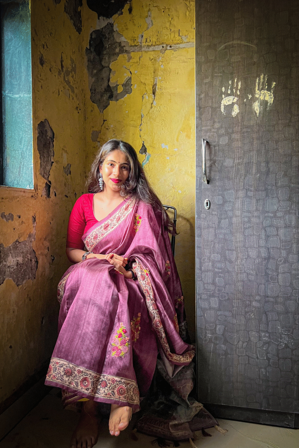 Embroidery: Intricate Lucknowi embroidery adorns the saree, featuring delicate patterns, motifs, and florals crafted using fine threads and precision stitches.