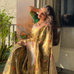 Crafted from rich golden tissue silk, this saree has a natural sheen that glows beautifully under sunlight. The fabric is lightweight yet luxurious, giving a perfect festive drape.