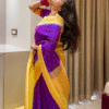 Crafted from rich golden tissue silk, this saree has a natural sheen that glows beautifully under sunlight. The fabric is lightweight yet luxurious, giving a perfect festive drape.