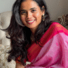Pair with rose-gold or kundan jewelry, a bright lip shade, and a neatly tied bun or side braid for a cheerful yet composed look.