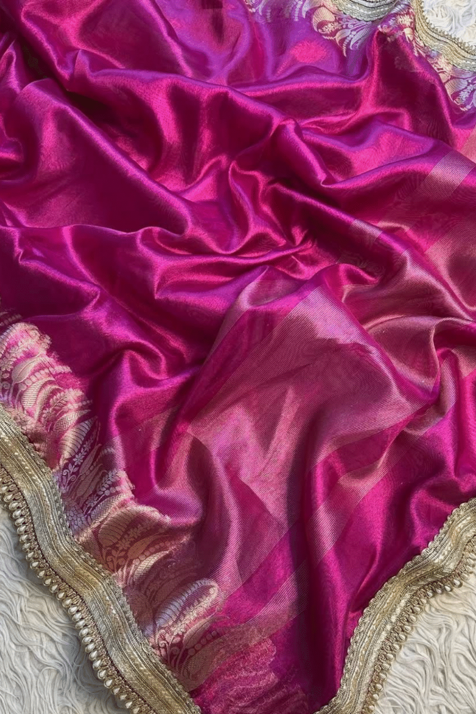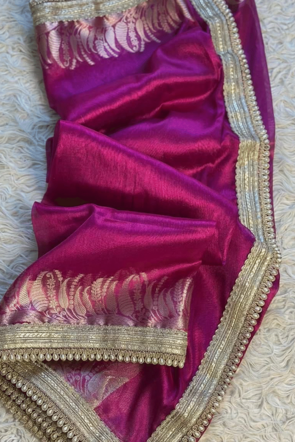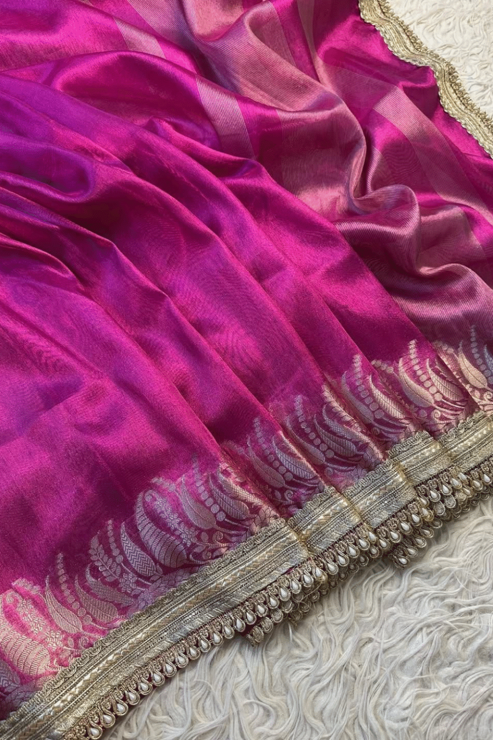 A bold, vibrant pink with luxurious Banarasi detailing, crafted for those who love a regal, eye-catching look. Lightweight, festive, and always picture-perfect.