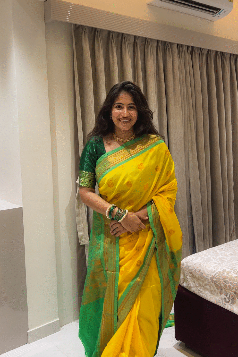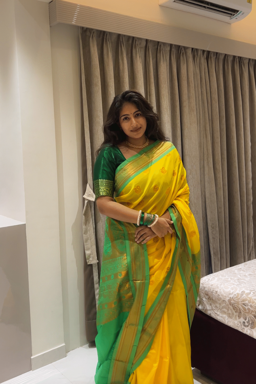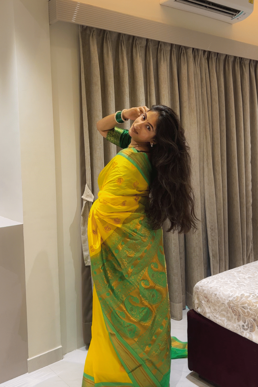 A perfect choice for Haldi, Gudi Padwa, Mangalagaur, housewarming, and festive pujas. Also an evergreen bridal trousseau pick.