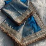 A stunning electric blue base paired with intricate golden-silver zari weaving. The vibrant blue symbolizes elegance, charisma, and modern royal charm.