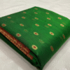 Woven in pure Chanderi silk, this saree brings an aura of sophistication with its feather-light feel and natural sheen. The fabric has that classic Chanderi texture — soft, airy, and elegant — making it perfect for long celebrations without feeling heavy.